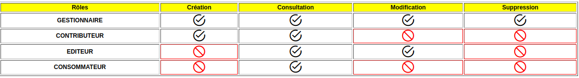 - CONTRIBUTEUR : le contributeur peut créer et consulter une fiche mais il ne peut ni la modifier, ni la supprimer.